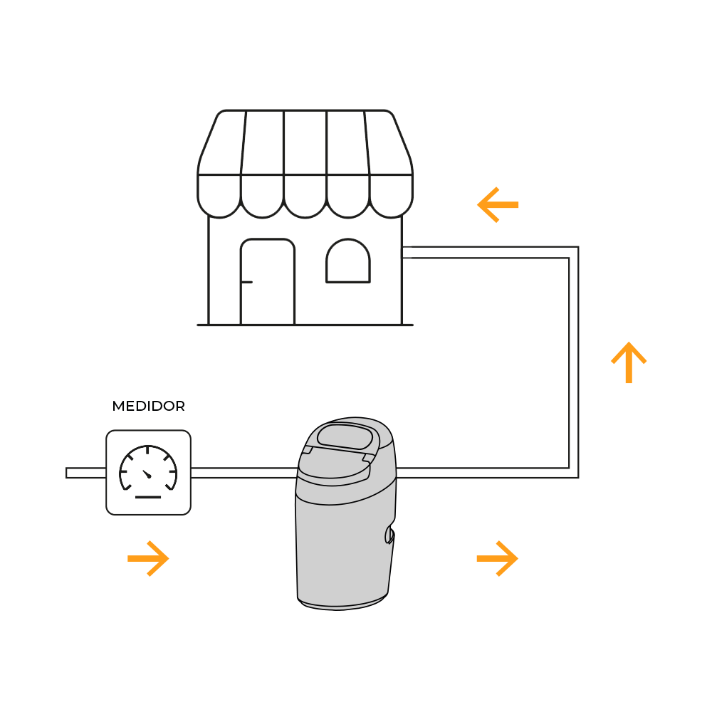 En la conexión de entrada de agua de tu negocio, de esta manera, mantienes todo el agua que entra, sin sarro (calcio y magnesio). Para asegurar el óptimo funcionamiento del ablandador, se recomiendo instalar en un ambiente seco y protegido de los rayos del sol.