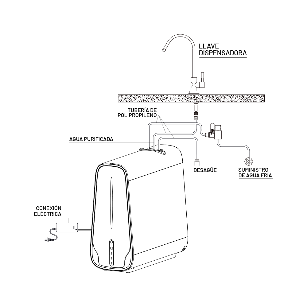 Purifica el agua directo desde la llave Con bomba y estanque incorporado Conexión eléctrica 220v Piezas y partes hechas de materiales de calidad alimentaria