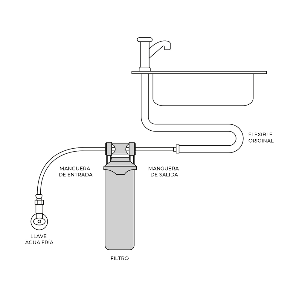 - - Uso: Bajo lavaplatos conectado a la red de agua fria.